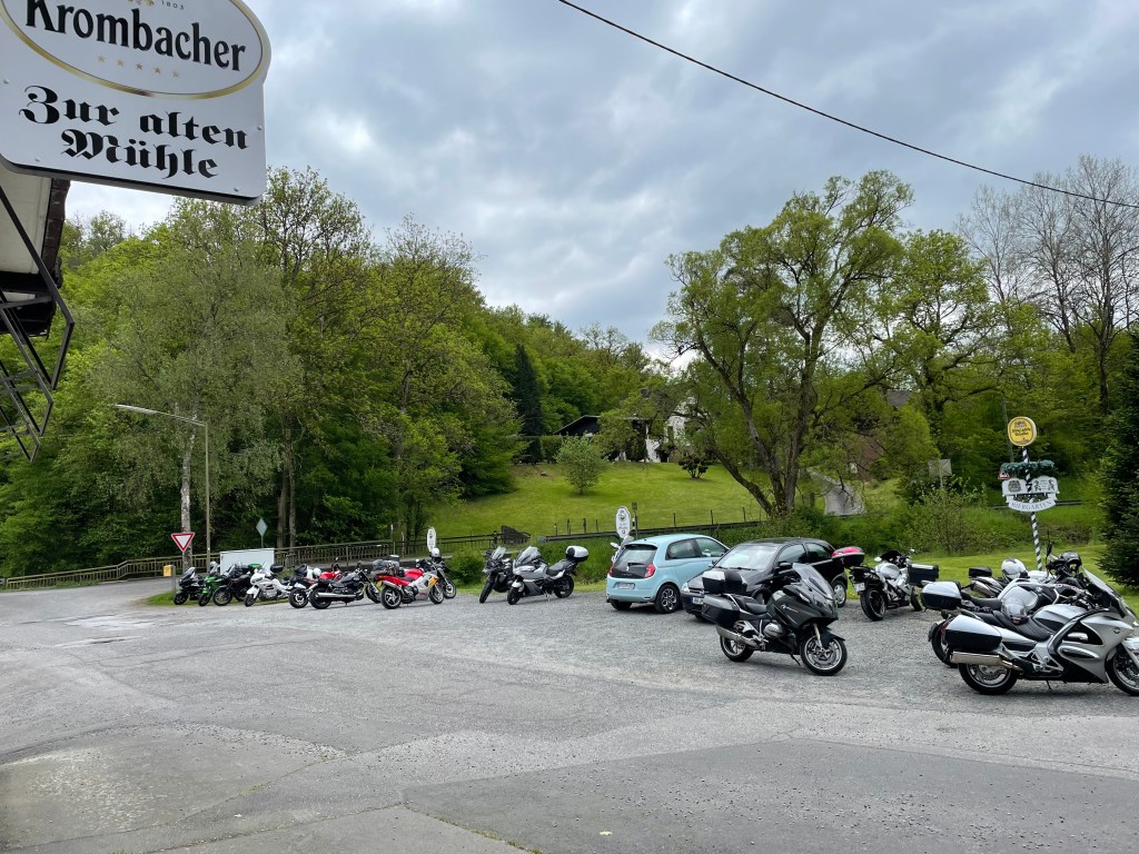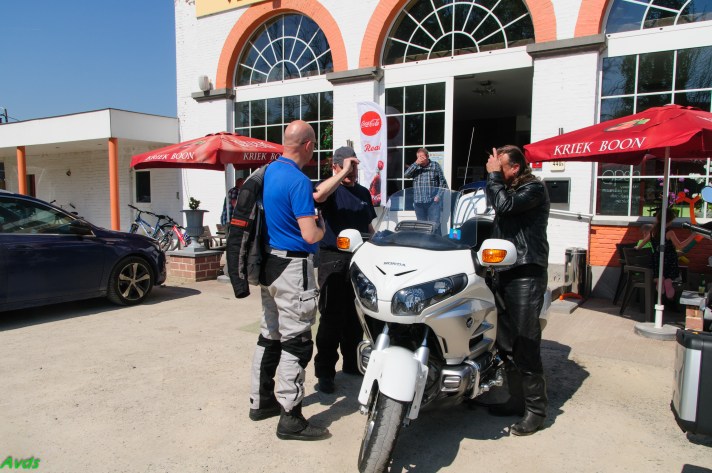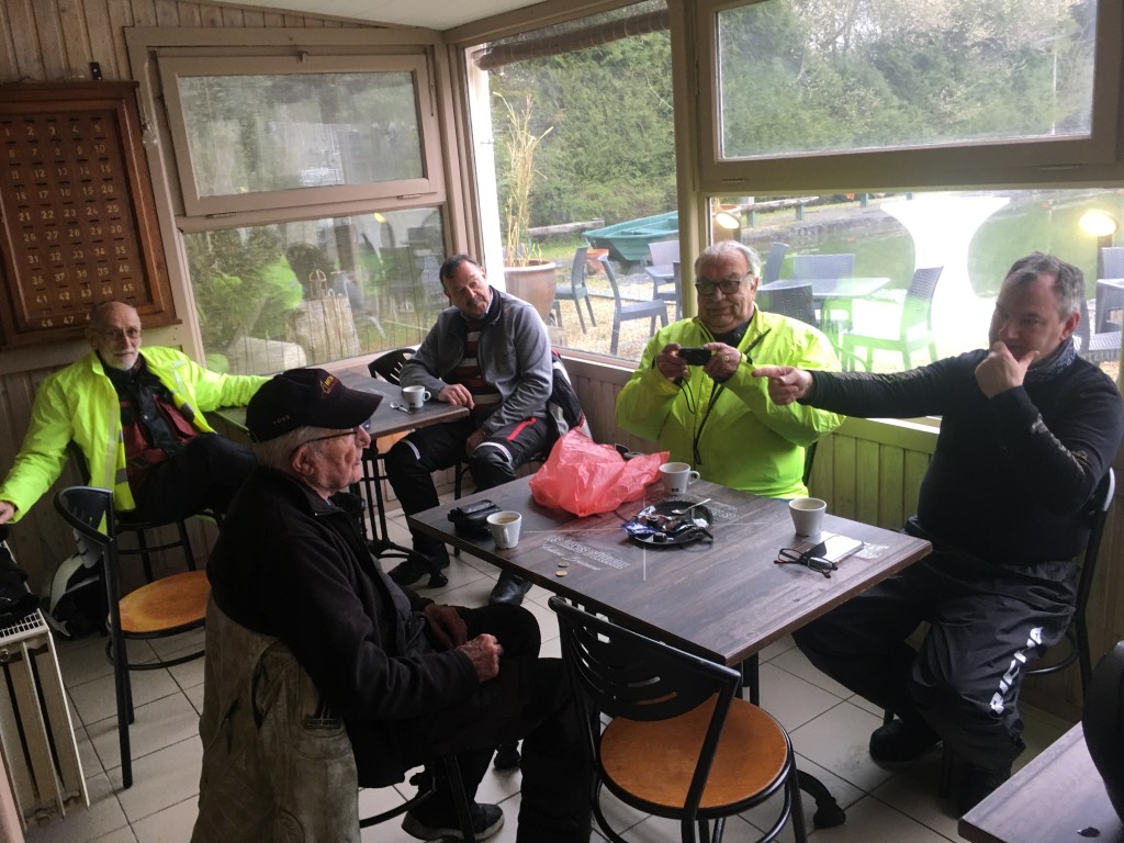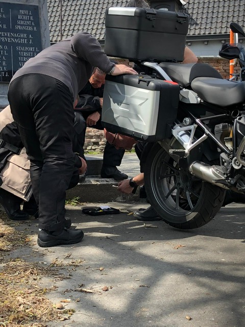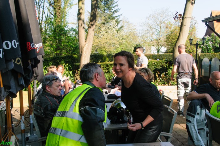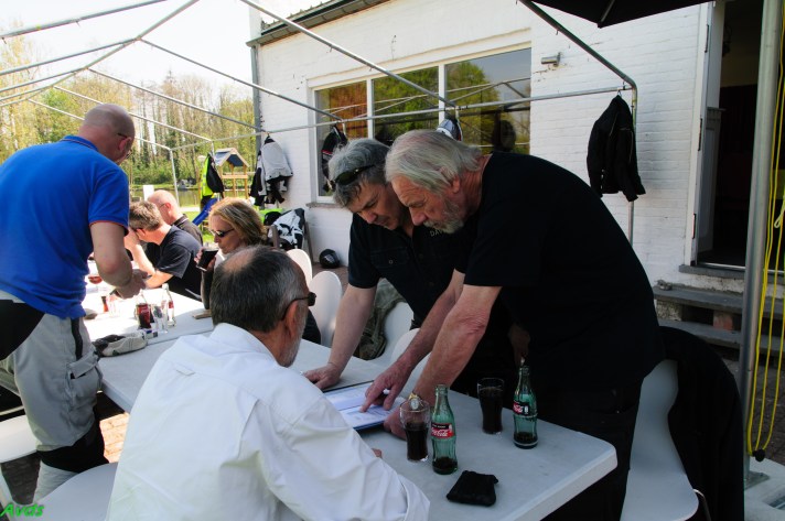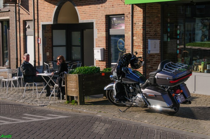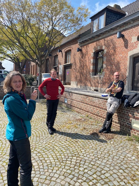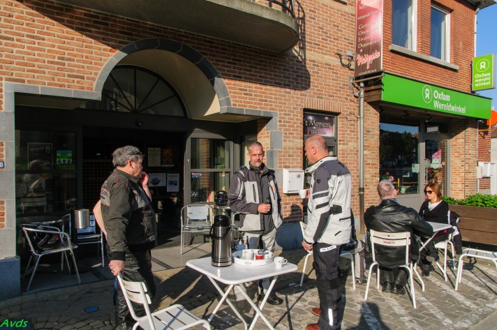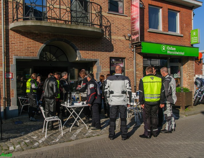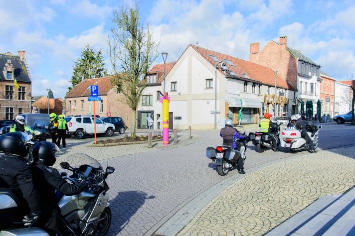 Om 09.30 uur stonden een 20 tal motoren en 26 motards klaar om te vertrekken. En waarlijk , het vertrek was feilloos. Groep 1 voor de kerk , groep 2 op de grote parking en groep 3 bij Emmanuel Van der Linden d’ Hooghvorst . En de baron zag dat het goed was -)