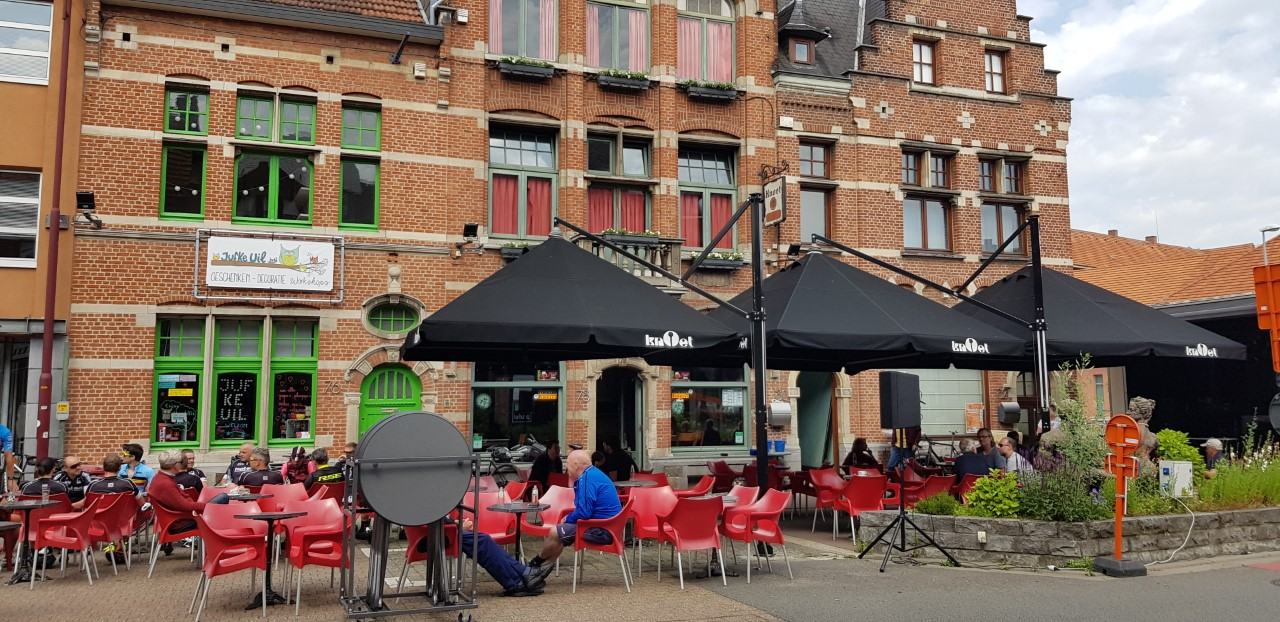 Via Lennik kwamen we na 45 km bij onze voormiddagstop .