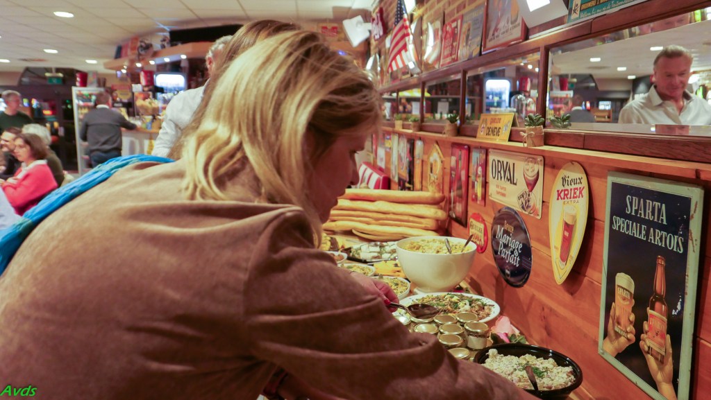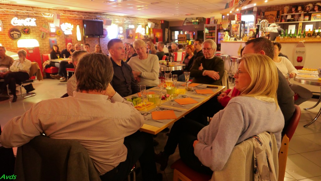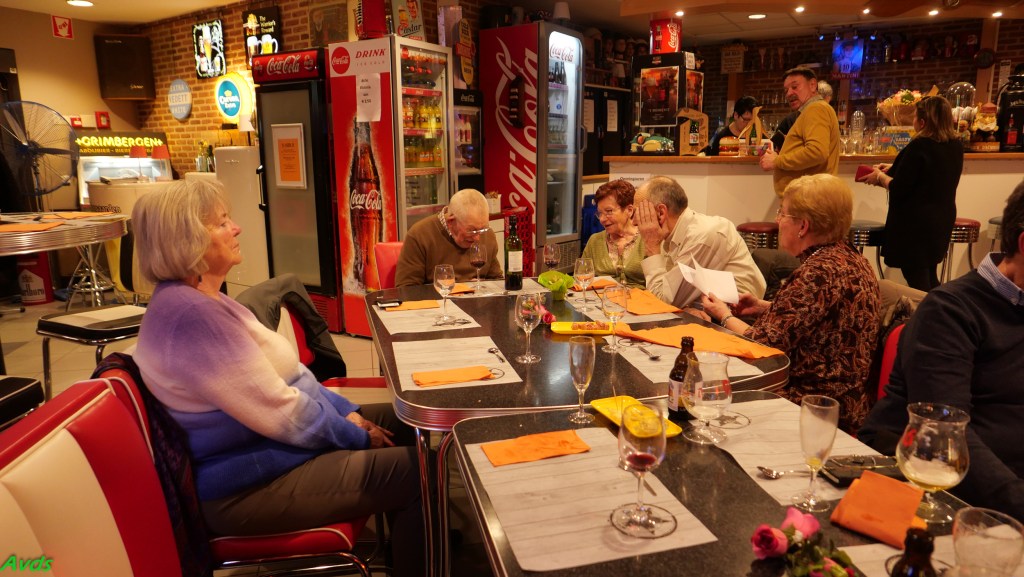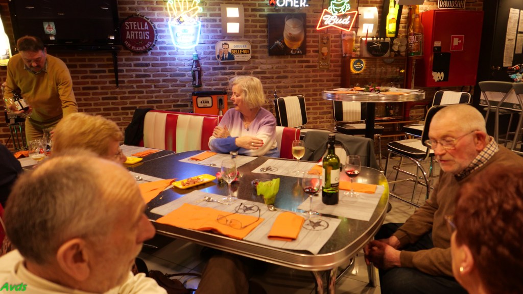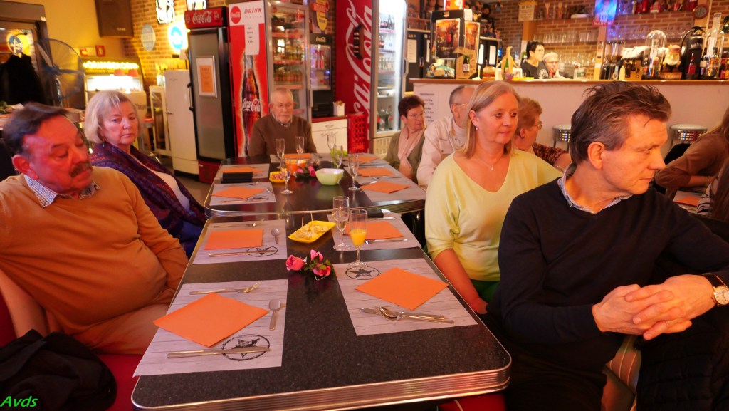 Tussen de 5 voorgestelde gerechten vond iedereen wel zijn gading. Geen lange wachttijd en vlotte bediening maakte dat allen tevreden kon genieten van hun maaltijd.