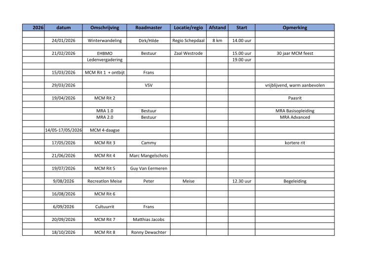 MCM-leden die een rit willen organiseren kunnen contact opnemen met het bestuur.